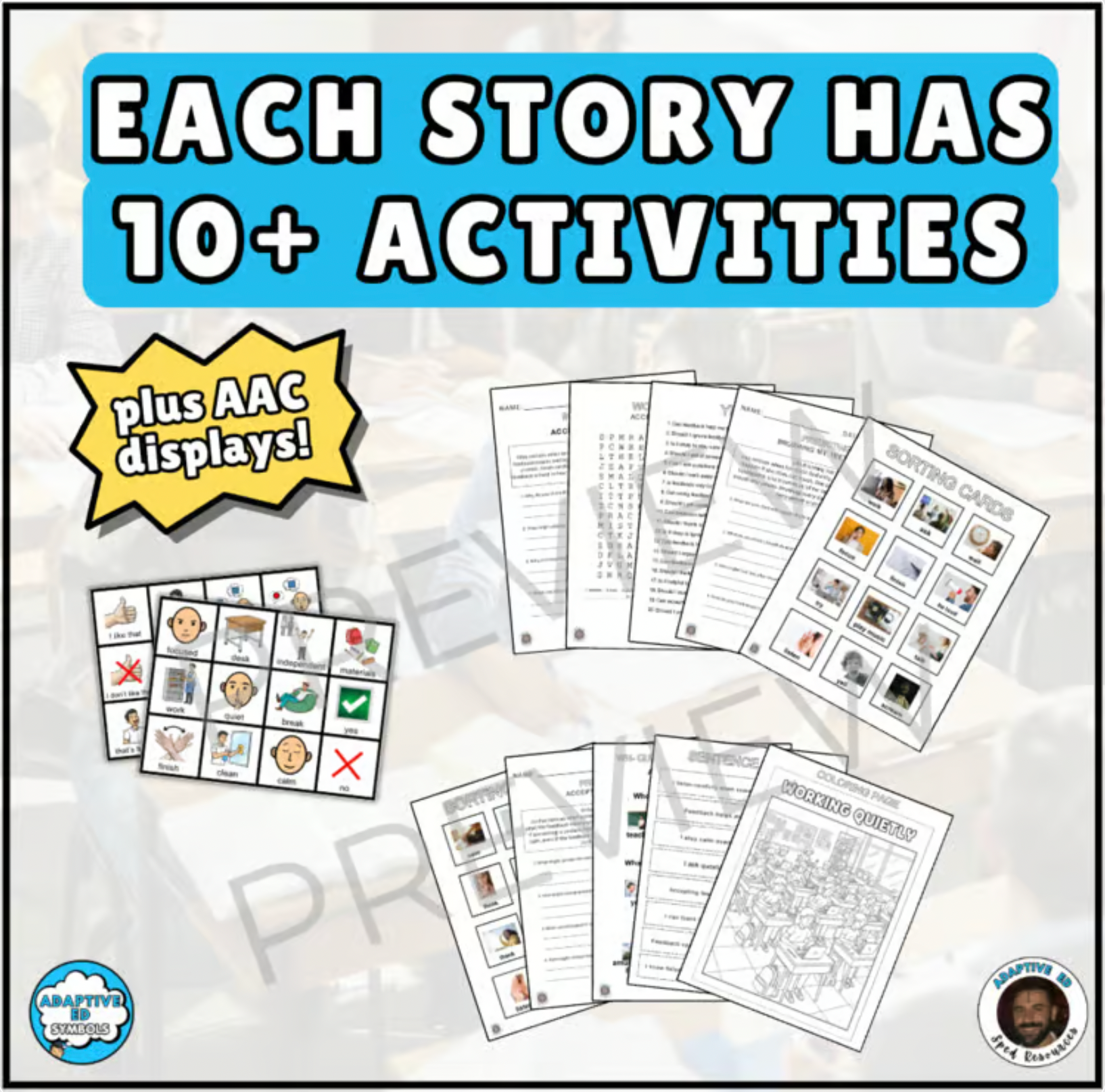 This engaging, age-appropriate social story helps learners stay calm, follow routines, and work quietly in the classroom. It also promotes functional AAC communication, real-world life skills, independence, confidence, and success in classroom settings.